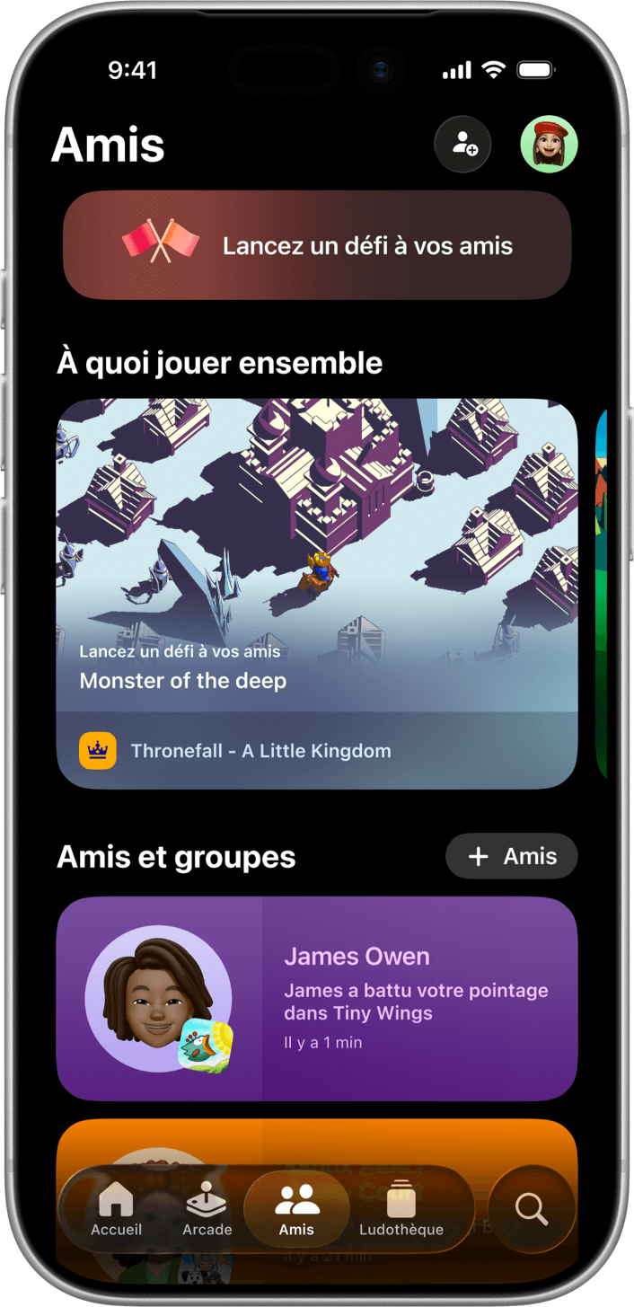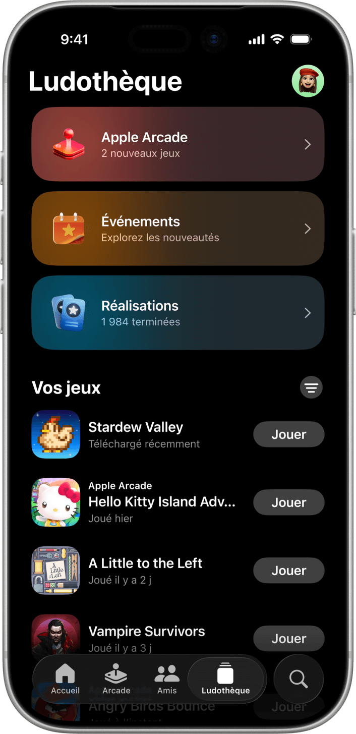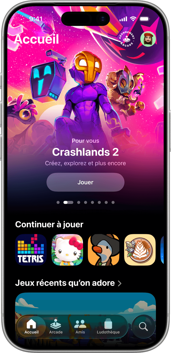 Profitez de centaines de jeux sans publicité incroyablement amusants, d’Alto’s Odyssey - Remastered à Sneaky Sasquatch. Suivez tous vos jeux Apple Arcade préférés et invitez vos ami·es et votre famille à se joindre à vous pour un peu de compétition5.
