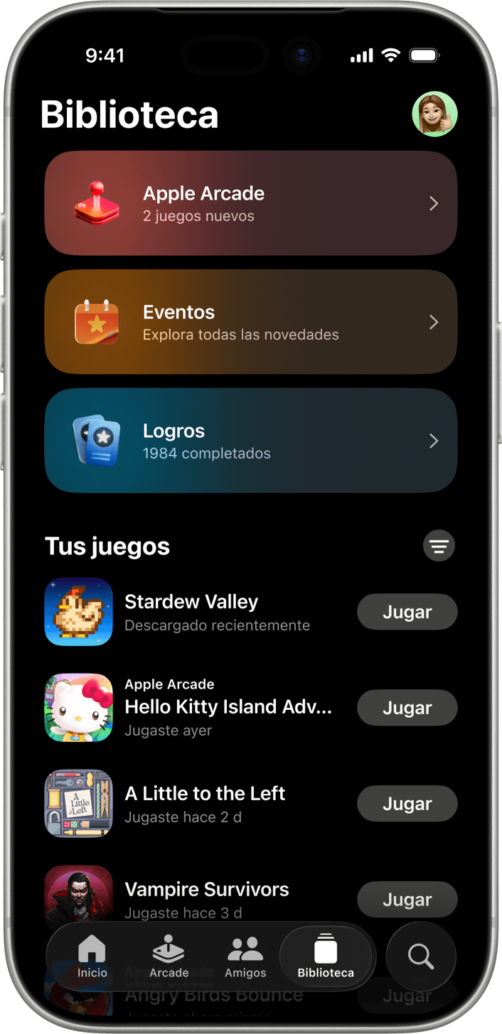 Disfruta de cientos de juegos increíbles sin un solo anuncio, desde Alto’s Odyssey - Remastered hasta Sneaky Sasquatch. Mantén tus títulos favoritos de Apple Arcade al día y diviértete aun más compitiendo con tus seres queridos5.