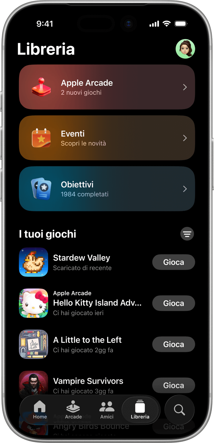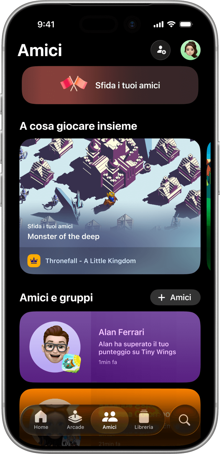 Divertiti con centinaia di giochi eccezionali senza pubblicità, da Alto’s Odyssey - Remastered a Sneaky Sasquatch. Non perderti i tuoi titoli preferiti di Apple Arcade e sfida chi vuoi per un divertimento condiviso.